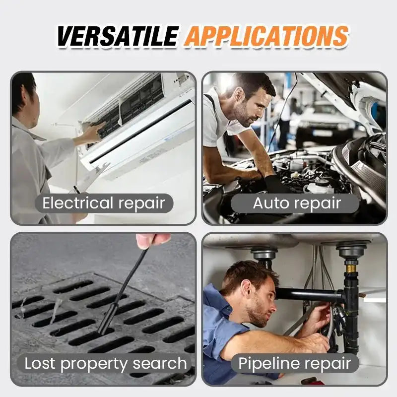 Un seul appareil, des dizaines d’utilisations : mécanique auto, plomberie, électricité, inspection de plafonds, conduits d’air, appareils électroménagers, fuites, objets coincés, pannes moteur… C’est l’outil indispensable pour chaque foyer et professionnel.
