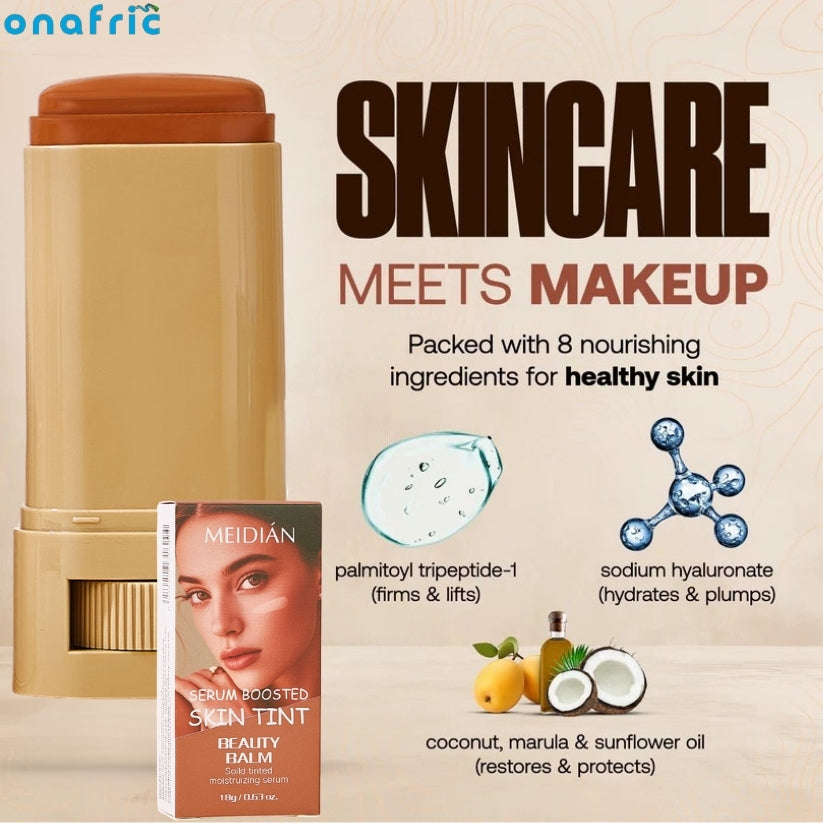 Un seul stick, trois fonctions : fond de teint, soin hydratant et retouche rapide.