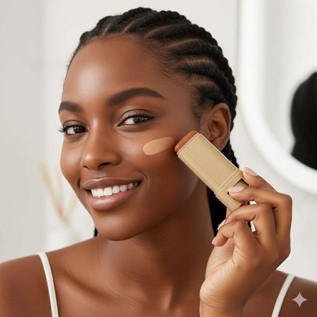 Ce bâton de fond de teint hydratant offre une couvrance naturelle et légère, sans effet masque.